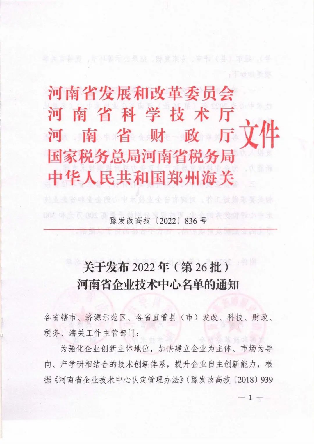 近日,河南省發(fā)改委、科技廳等五個權威部門聯合發(fā)文,公司企業(yè)技術中心獲批為 河南省企業(yè)技術中心,是繼2021年度獲批信陽市施工技術工程